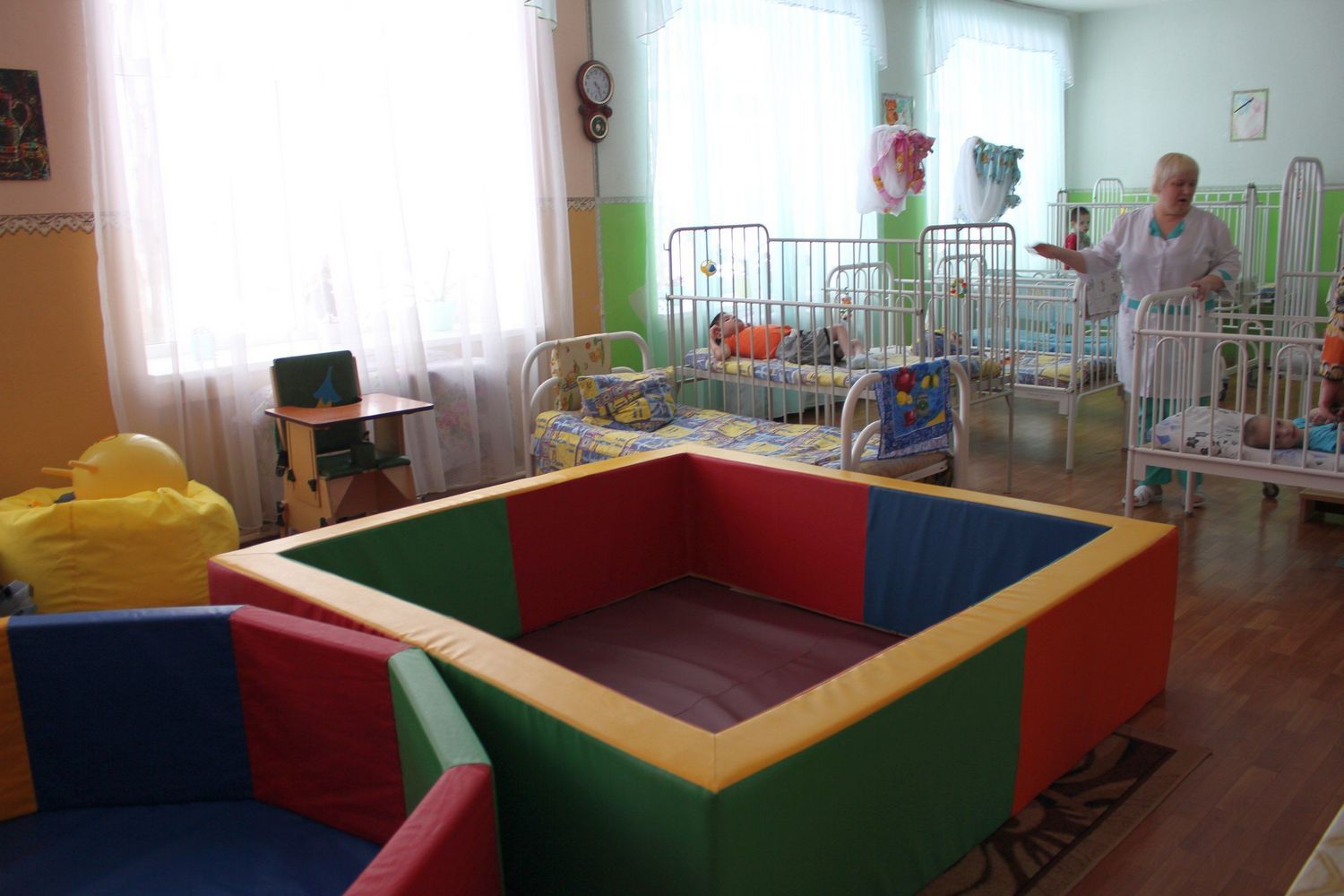 Новый год в отделении милосердия хоть и начался в марте, но принес настоящие перемены. Дед Мороз доставил ребятам самые полезные мечты. Во-первых, новенькие сухие бассейны. Они наполняются специальными шариками, в которых можно играть в развивающие игры, расслаблять ручки и ножки, и просто весело проводить время. Это занятие у ребят одно из самых любимых – обивка старых бассейнов была затерта до дыр. Новые шились на заказ, чтобы быть максимально удобными именно для осинских детей. Оплатить это мягкое чудо помогли средства, собранные Советом главных врачей Пермского края.