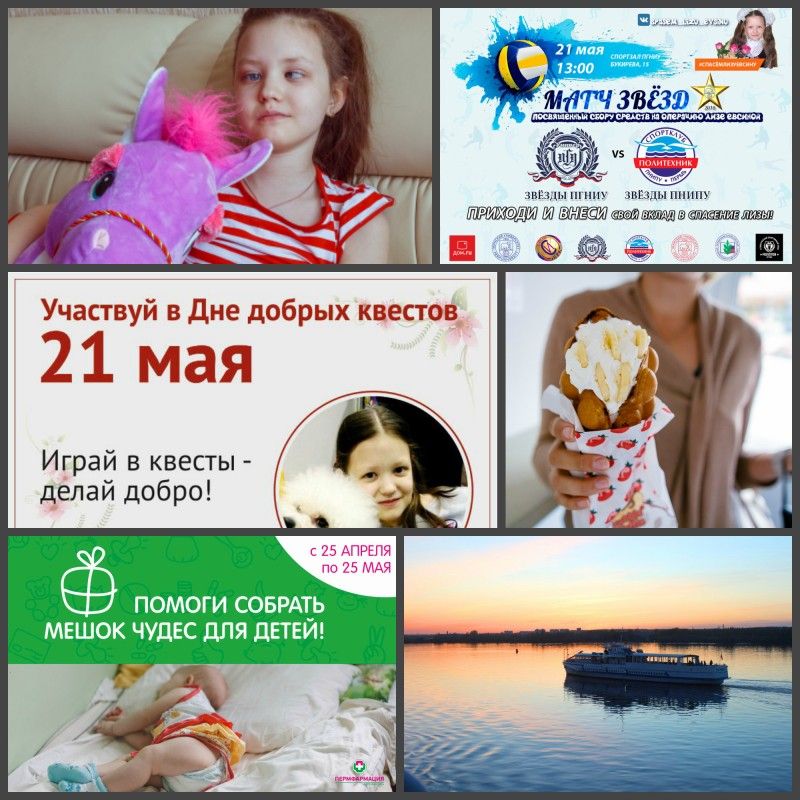 - …или отправившись на чудесную прогулку по Каме. 5 рублей с каждого проданного билета отправятся на помощь Лизе Евсиной и другим подопечным Службы скорых чудес. Купить Купить чудотворительный билет можно в кассе на причале №4 у Речного вокзала с 11 часов утра до полуночи. Узнать подробности и стоимость билетов – в группе компании «Кама-тревел».