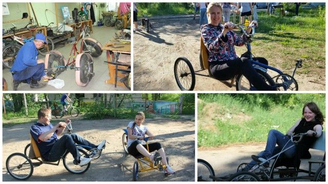 В прошлые выходные ребята из Соликамского детского дома снова принимали у себя гостей: Деды Морозы и Снегурочки приехали к ним, чтобы отпраздновать день майских именинников, устроить большой барбекю-пикник, провести необычные конкурсы и, конечно, прокатиться на уникальных соликамских велосипедах. Ребята придумывают, перекрашивают и собирают их сами из старых запчастей.