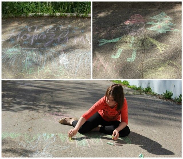 И даже устроить конкурс рисунков на асфальте. Оценивая творчество, Деды Морозы и Снегурочки впервые увидели собственные шуточные отражения в асфальте.