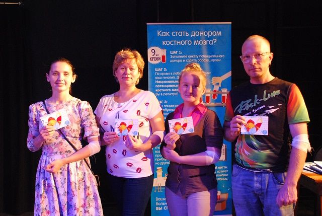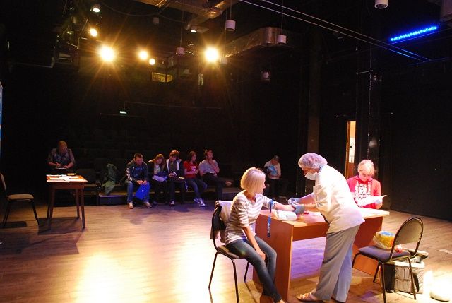 Cдать 9 мл крови и стать потенциальными донорами прямо на сцене вышли и сотрудники театра. Кроме актёров участниками стали работники администрации и театральных цехов.