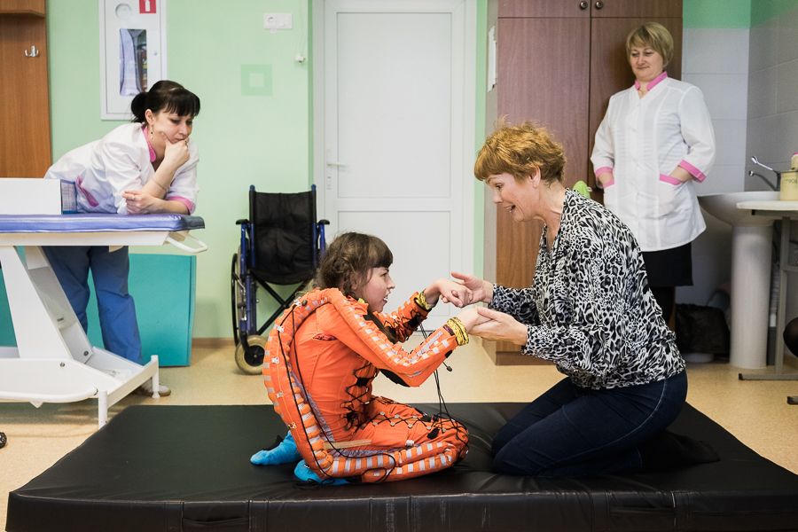 Медицинские сотрудники интерната при поддержке проекта «Вернуть будущее» освоили современные технологии реабилитации. С их помощью ребята с тяжелыми двигательными нарушениями восстанавливают мышцы в умных костюмах, учатся стоять, сидеть, кушать самостоятельно за столом.