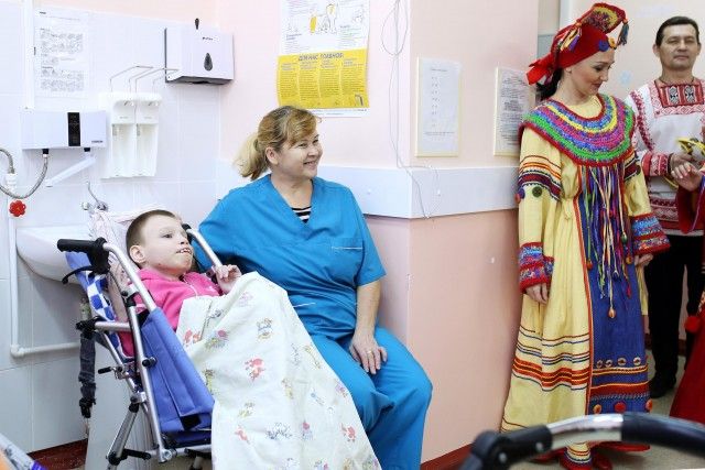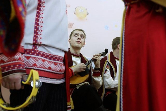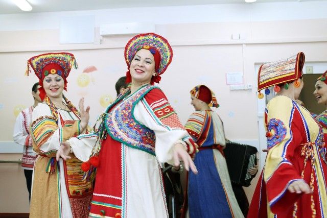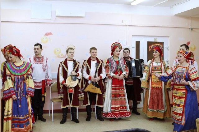 В гости к маленьким пациентам паллиативного отделения приехала малая хоровая группа ансамбля и небольшой оркестр народных инструментов: баян, балалайка и домра. Специально для ребят артисты выбрали свои лучшие костюмы — самые яркие и нарядные, которые обычно используются только на самых важных выступлениях.