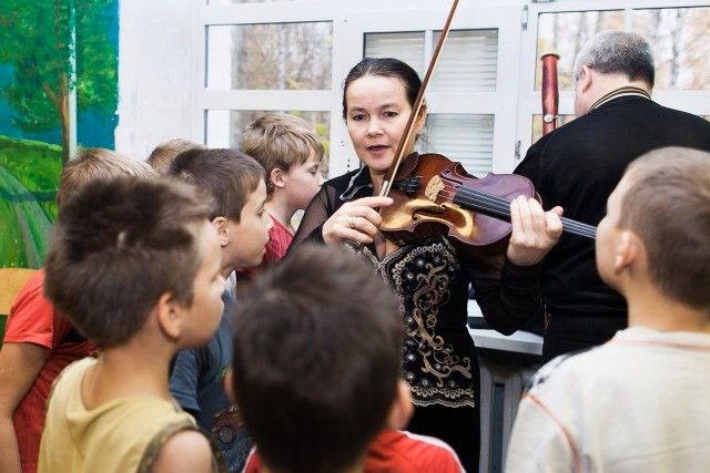 Когда завершилась музыкальная программа, встреча артистов с ребятами не закончилась. Они много общались, показывали инструменты и объясняли, как те устроены, и рассказывали профессиональные истории.