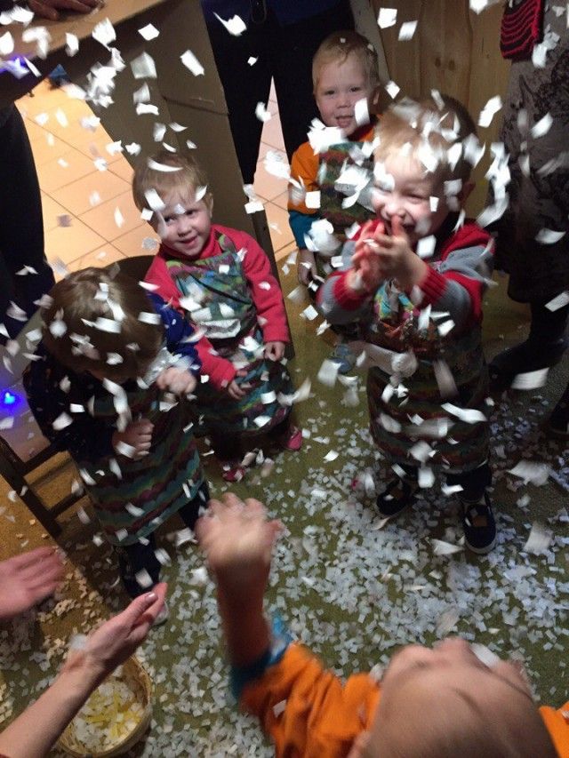 Для того, чтобы малыши не успели устать или заскучать, занятия все время менялись — от игр с цифрами до переменок с песнями и танцами, от рисования ладошками до запусков почти настоящего снежного вихря и борьбы подушками. А в конце ребят ждал самый настоящий клад — красивые и необычные яблоки в фольге. Объяснять ничего не пришлось: мальчишки и девчонки сразу поняли, что яблоки им попались не простые, а волшебные.