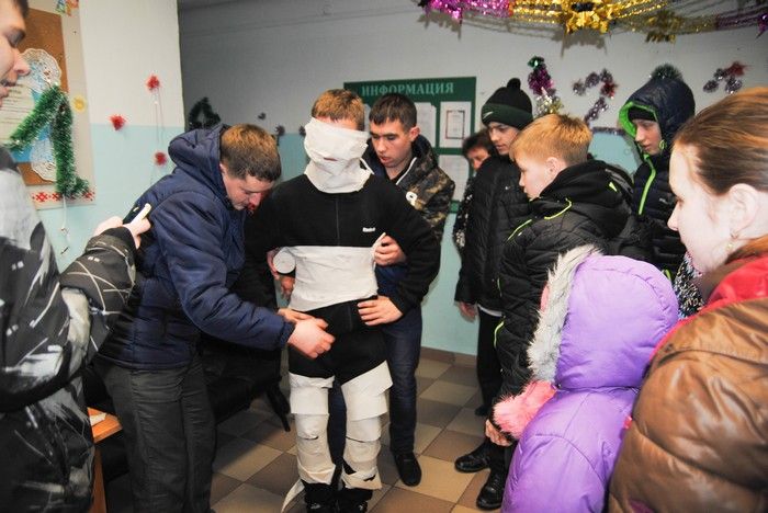Ждать пришлось почти 40 минут. Всё это время мальчишки и девчонки преодолевали препятствия, выполняя задания на улице, в коридорах и в холле центра, где они живут. Чтобы добраться до своих заветных желаний, им пришлось справиться с загадками, игрой в мумию и хитрой считалочкой.