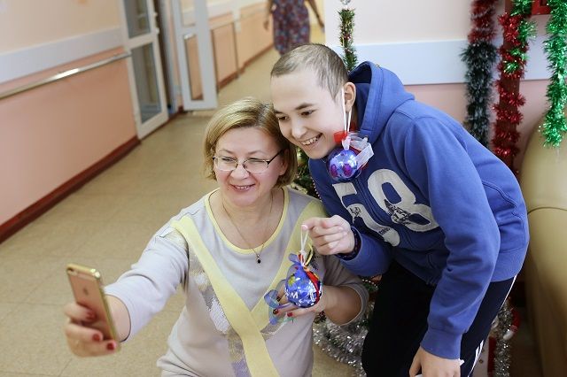 Поддержку в отделении паллиативной помощи получают ребята с неизлечимыми заболеваниями. Ручки не всегда слушаются их, поэтому не все смогли раскрасить шарики без поддержки взрослых. Маленькой Лере понадобилась помощь Снегурочки.