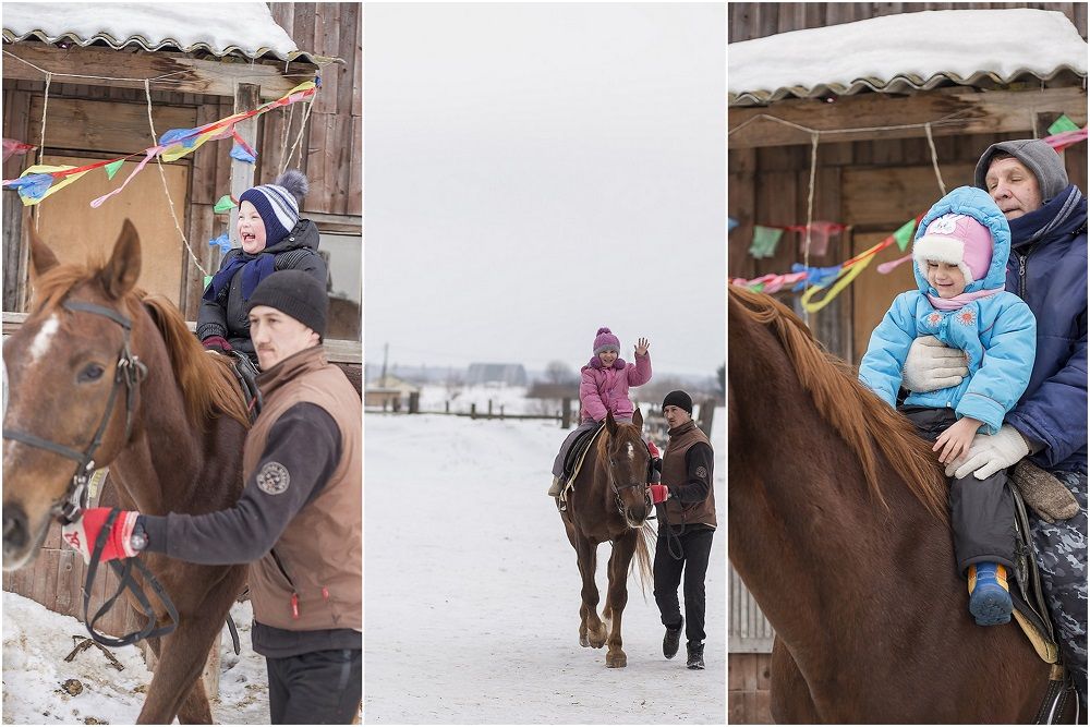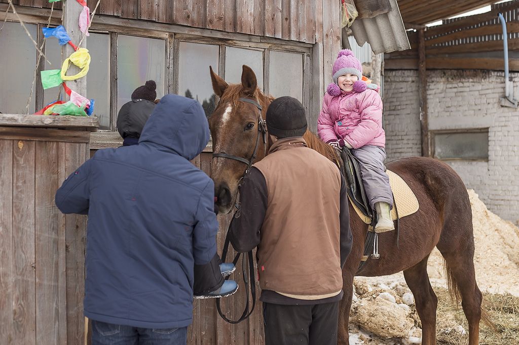 Работники клуба постарались уделить как можно больше внимания каждому ребенку. Времени было достаточно, поэтому все ребята пообщались с лошадьми и прокатились на них несколько раз — и в санях, и верхом. В конце встречи ребят напоили чаем из самовара, угостили пирогами и пригласили приехать в гости снова.
