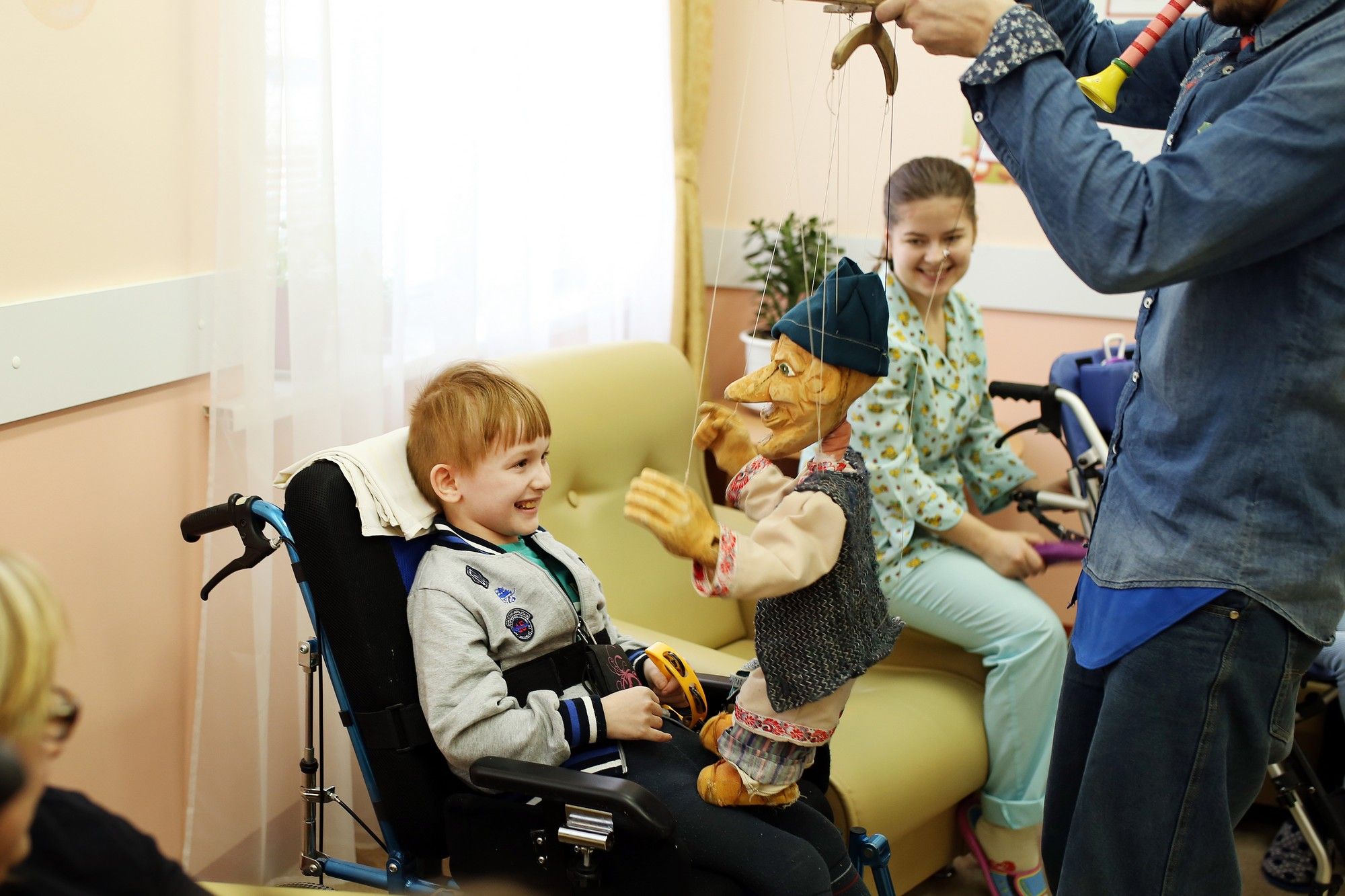 Перед началом сказочного представления в небольшом холле паллиативного отделения собрались пациенты и их родители. Из кучи гремящих, звенящих и прочих предметов, издающих звуки, каждый выбрал инструмент по душе или по силам. Лиза потянулась за большим барабаном, но удержала в руках лишь крохотную погремушку. Молчаливое и безропотное помещение в миг ожило. С ним ожили и дети.