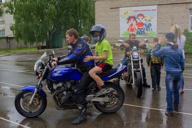 «Ого, они что настоящие? Ничего себе! Любопытству, счастливым улыбкам и горящим глазам не было предела, когда ребята рассматривали мотоциклы. К ним как будто бы приехали гости с другой планеты», — рассказывает Снегурочка Наташа Цветова о знакомстве мальчишек и девчонок с байкерами. Участники пермского мотоклуба =МТ59= дали ребятам возможность посидеть на настоящем байке, надеть шлемы, потрогать и изучить все технические навороты мотоциклов. И это было огромным счастьем не только для мальчишек.