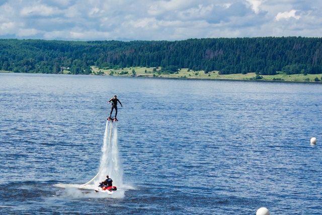 Все стали зрителями соревнований по аквабайку; видели фантастические выступления необычного водного транспортного средства — флайборда, человек на нем поднимался высоко над водой; познавательно посетили выставку экстремальной техники.