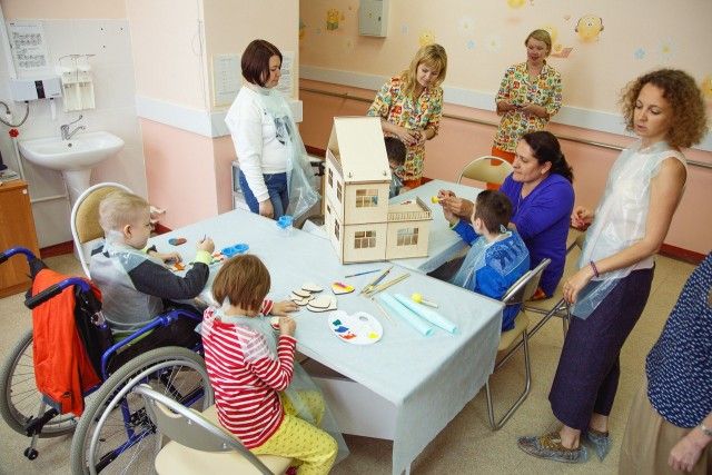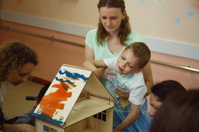 «Мы показали детям несколько необычных приемов. Как, например, можно рисовать по дереву с помощью губки. Её и держать удобнее, и с её помощью получаются более интересные узоры. Мы все вместе занялись оформлением домика, каждый свою часть. Интерес не пропадал до конца, пришлось даже прерваться, так как распорядок дня никто не отменял. Но домик остался в отделении, уже красивый и оформленный своими руками, с мебелью, которую мы с одним из участников вместе пособирали, — рассказывает Юлия Полякова из компании DOLODOM. — Понравилось именно то, что рисовали с большим удовольствием. Никому не требовалось помощи или подсказок: все умело брали краски, не боялись их смешивать, и в итоге все вместе радовались результату».