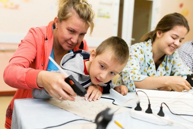 В детском паллиативном отделении продолжается серия мастер-классов в рамках проекта «Творчество жизни». На них талантливые пермяки делятся своим опытом и секретами с другими талантливыми пермяками, которые пока не знают о своих талантах. Так маленькие жители отделения и их родители открывают для себя все новые и новые техники и приемы, а вместе с этим — отвлекаются от повседневных забот, творят вместе и радуются своим успехам.
