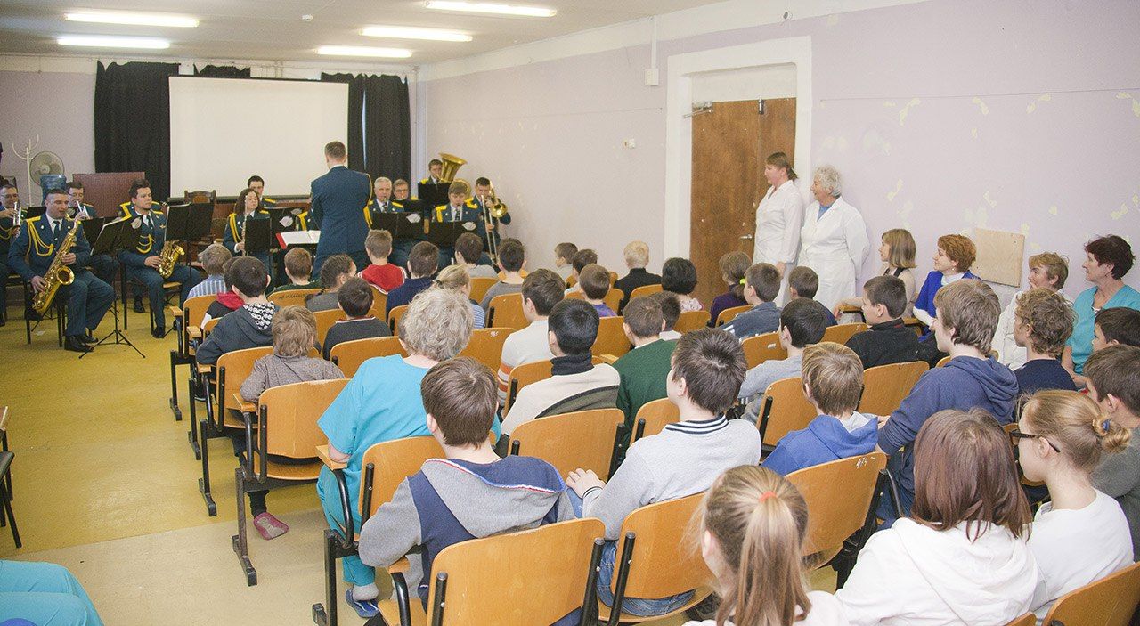 «Появившись перед публикой, я немного растерялся и даже забыл что хотел сказать. Передо мной сидели дети совсем другие, внешне не похожие на тех, которых мы привыкли видеть. Несколько секунд молчания, после чего я, прежде всего, сменил официальный тон ведущего на более мягкий и доброжелательный. Первые пять минут я просто разговаривал с ними об их жизни, после чего постепенно переходил на тему музыки и духового оркестра. Было решено исполнить светлую и спокойную музыку Моцарта в исполнении мягкого звучания дуэта кларнетистов. Ребята слушали очень внимательно, после чего начали охотно отвечать на мои вопросы. Пришлось отказаться от традиционных военных маршей, резкой и быстрой музыки, так как их звучание могло передаться на их эмоциональное состояние. Я почувствовал, что эти дети открыты, они готовы говорить и слушать. Из своей речи я убрал сложные музыкальные термины и имена композиторов. Старался настроить их на художественное состояние музыки и тембр звучания духовых инструментов», — рассказывает Вячеслав Алексеевич.