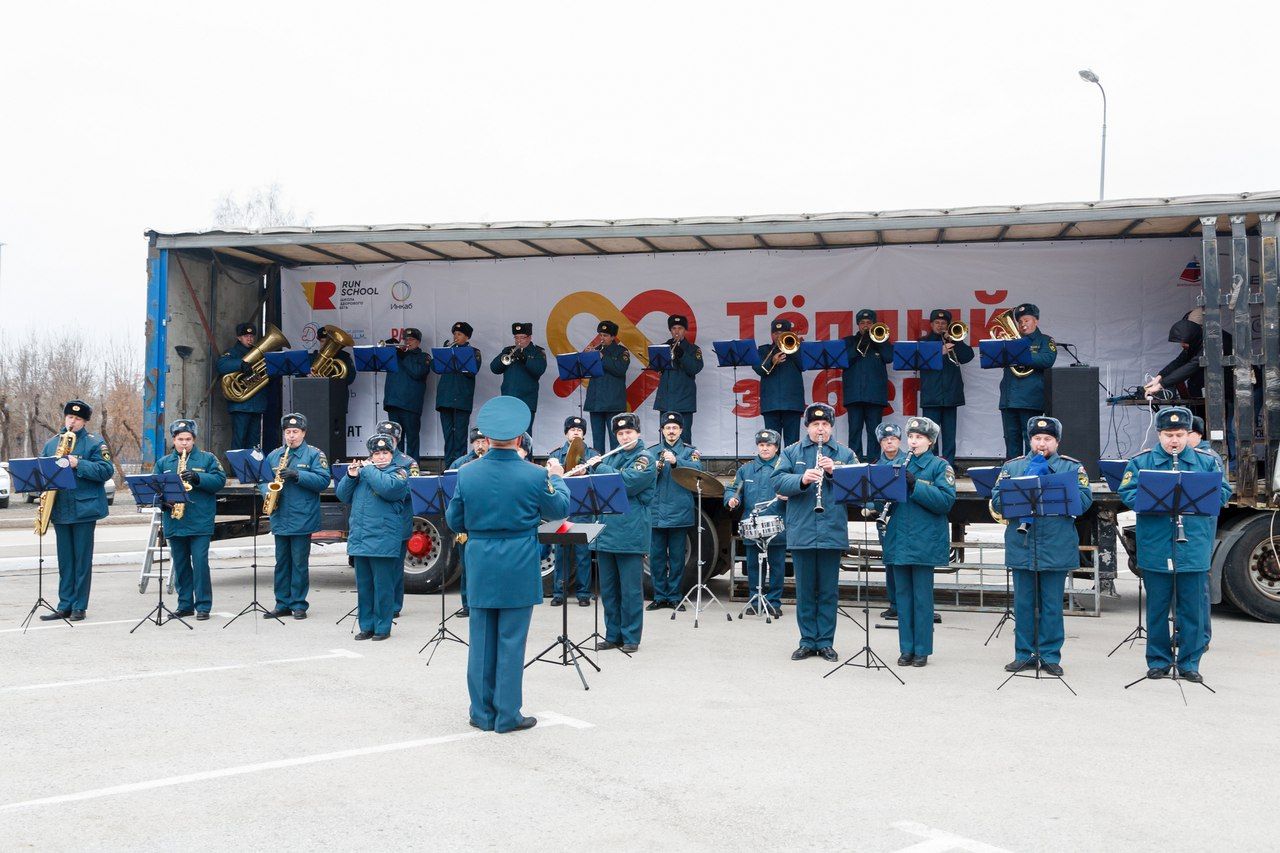 Антураж «Мориона» в этот день напоминал фестивальный городок. Сценой служила огромная автомобильная фура, с которой и выступал Пермский губернский оркестр, велась разминка для участников забега, а артист Александр Ведерников исполнял песни под гитару. Рядом со сценой расположился маркет с горячими напитками и уличной едой, арт-объекты и фотозона.