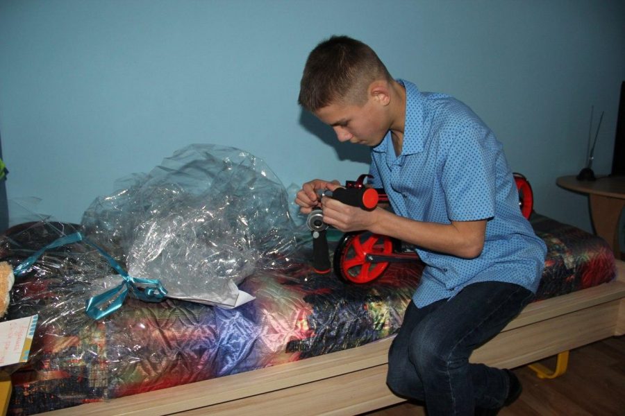 Наконец, долгожданный день настал. 24 декабря, загрузив подарки в машины, мчимся в Березники. Специально, чтобы дети нас не видели, заходим через административное крыло здания. Заносим в коридор подарки… и тут к нам подбегает наш помощник и главный разведчик Ромка. Хватает большой пакет, чтобы занести его в кабинет, при этом успевает разглядеть, что там лежит самокат для Андрея и на весь детский дом кричит: «Андрееей, тебе самокаааат привезли!»