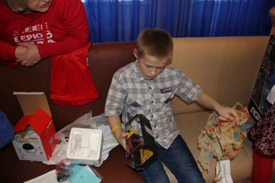 Дед Мороз настоящий волшебник: и футбольную форму с фамилией Виктора подарил, и Светлане спортивный костюм нашел, и Антоше большой вертолет на пульте. Никого из ребят не забыл. Лишь трое — Алексей, Антон и Эдуард не получили свои подарки, они находятся в больнице, после выписки ребята обязательно их получат.