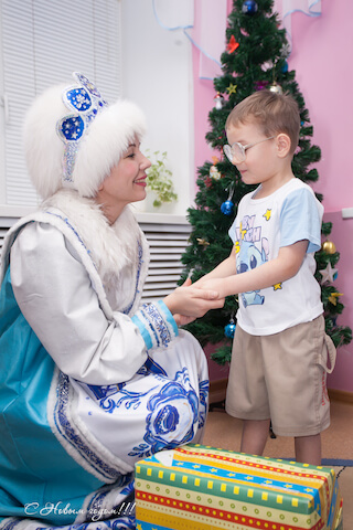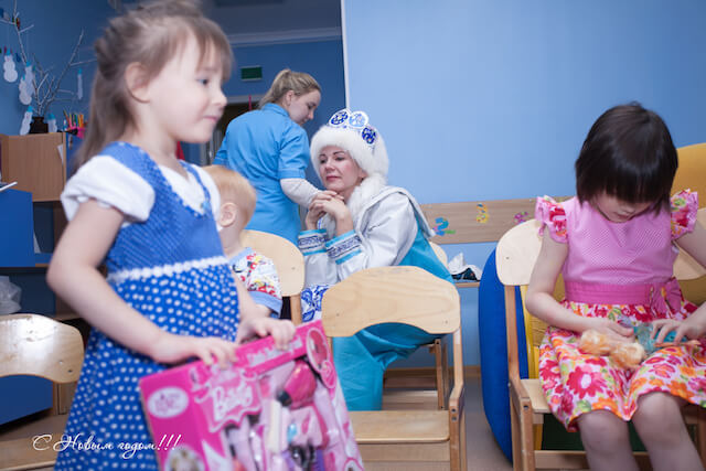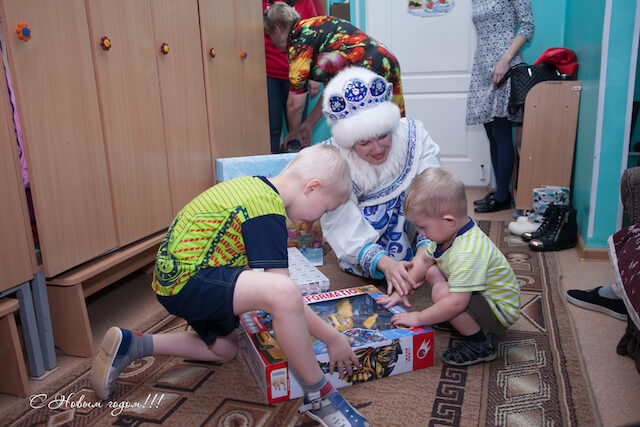 К Снегурочке выходили один за другим и рассказывали стишки. Было много ребят, которые в учреждении находятся вместе с братьями и сестрами. Одному мальчишке подарили двух роботов в коробках, которые, без шуток, были размером с него самого. Другой девочке подарили набор медсестры, так что она сразу нашла себе пациента и начала ставить ему уколы. Еще был парень, который запрыгал от радости, увидев в своем свёртке настоящие нунчаки, которые были как у настоящих Черепашек Ниндзя.