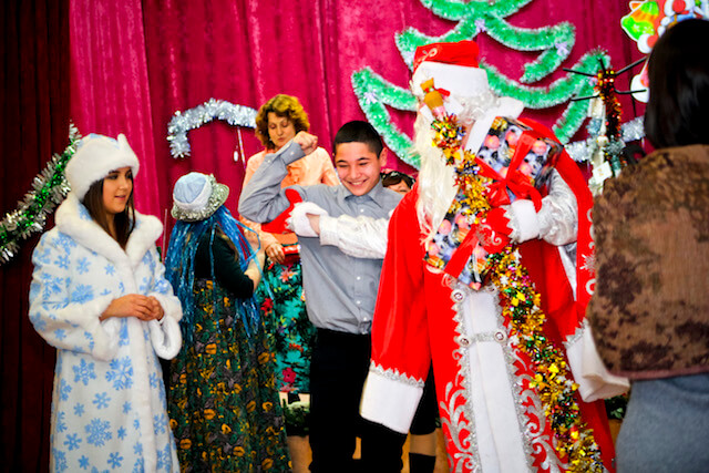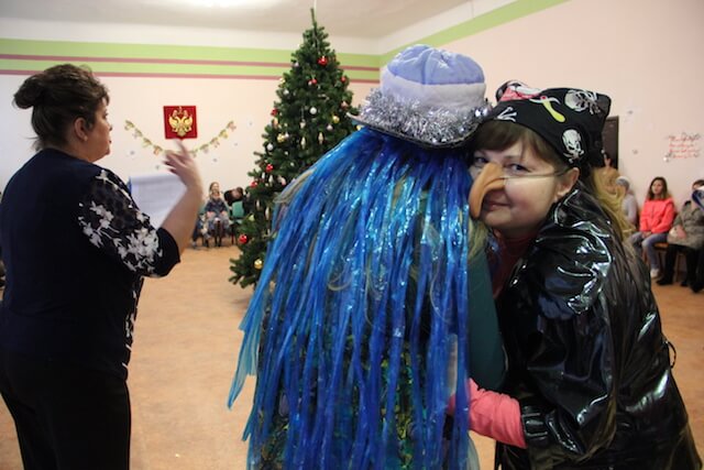 Большой актовый зал красиво украшен, в центре стоит высокая ёлка, а вдоль стен рассаживаются ребята самого разного возраста, от двух до семнадцати лет. Скоро начнется новогоднее представление. Среди артистов и воспитатели, и дети и наш Дед Мороз со Снегурочкой. Смешной и весёлый получился праздник! Не обошлось без Бабы Яги и Кикиморы, которая выдавала себя за Снегурочку. Но ребята, конечно же, поняли, где настоящие Дед Мороз со Снегуркой. Чудесным образом все подружились и вместе веселились.