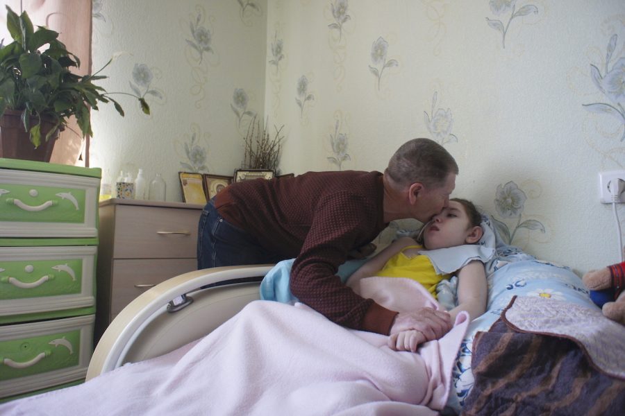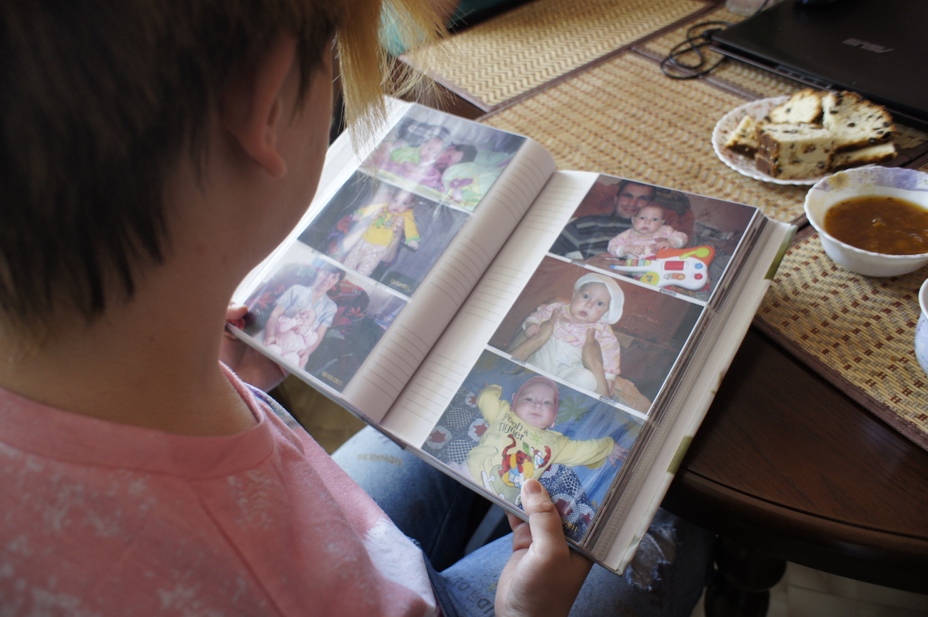 Годовалый брат Даши ходит по комнате переваливаясь. «Даша тоже была обычным ребёнком в этом возрасте, — рассказывает Ольга. — Сейчас трудно поверить, а ведь Даша и ходила, и говорила. «Деда», «мама», «киса», «ляля» — такие были первые слова, а потом замолчала». Когда Даше было столько же, сколько её младшему братику сейчас, она начала спотыкаться при ходьбе, потом — натыкаться на дверные косяки и предметы. Болезнь развивалась очень быстро, к полутора годам Даша уже не могла стоять и ходить, к двум — сидеть, к трём — практически ослепла. У Даши — мутация в генах, на медицинском языке «нейрональный цероидный липофусциноз» — заболевание крайне редкое, встречается в мире 0,6 раз на миллион человек. Мама показывает альбом со старыми фотографиями Даши — с самых первых на нас смотрит глазастый карапуз. Ольга признаётся, что когда забеременела вторым ребёнком, сразу сделала генетический анализ на ту же болезнь, что и у Даши — у сына диагноз не подтвердился.
