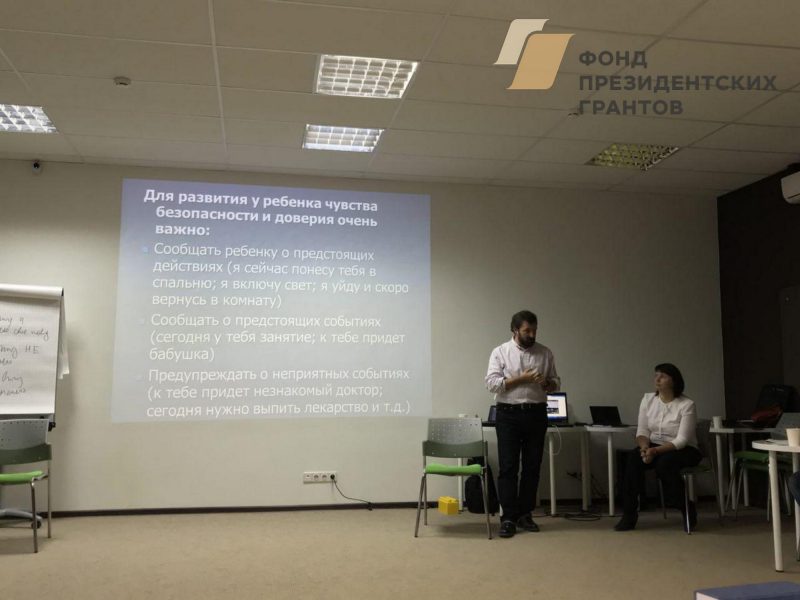 Семинар «Тренинг тренеров. Забота с уважением» проводился с использованием гранта Президента Российской Федерации на развитие гражданского общества, предоставленного Фондом президентских грантов. Команда проекта благодарит «ROOM 404» и Properm.ru за идеальное для семинара помещение!