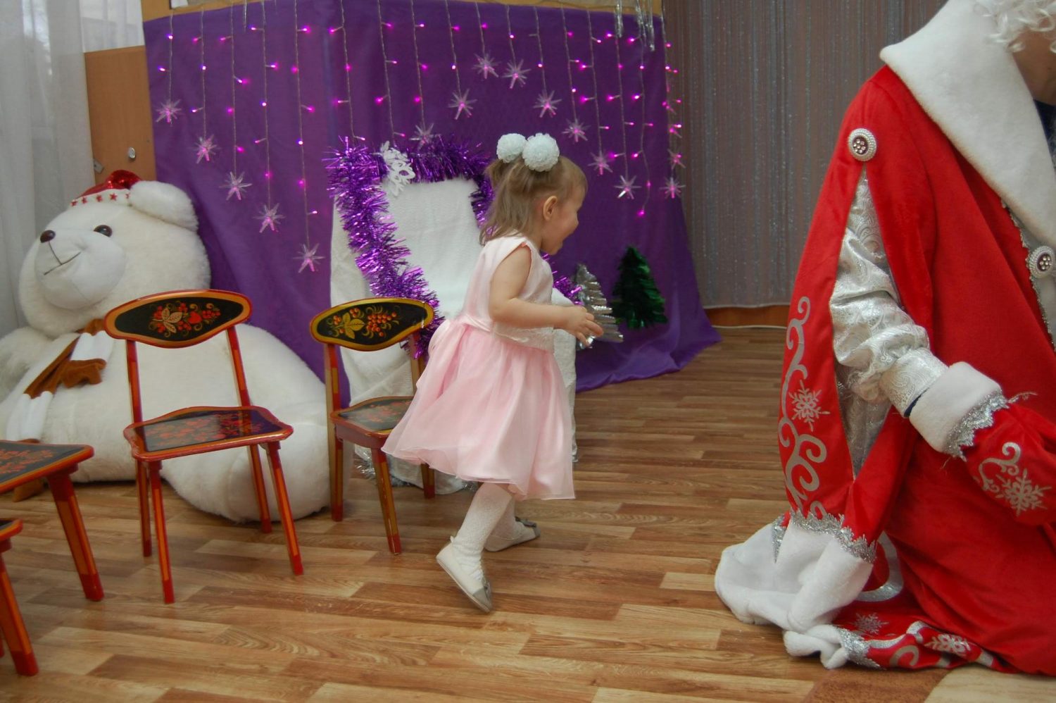 Самые маленькие с удовольствием рассказывали новогодние стишки и песенки Деду Морозу. Не обошлось и без хоровода вокруг ёлки.