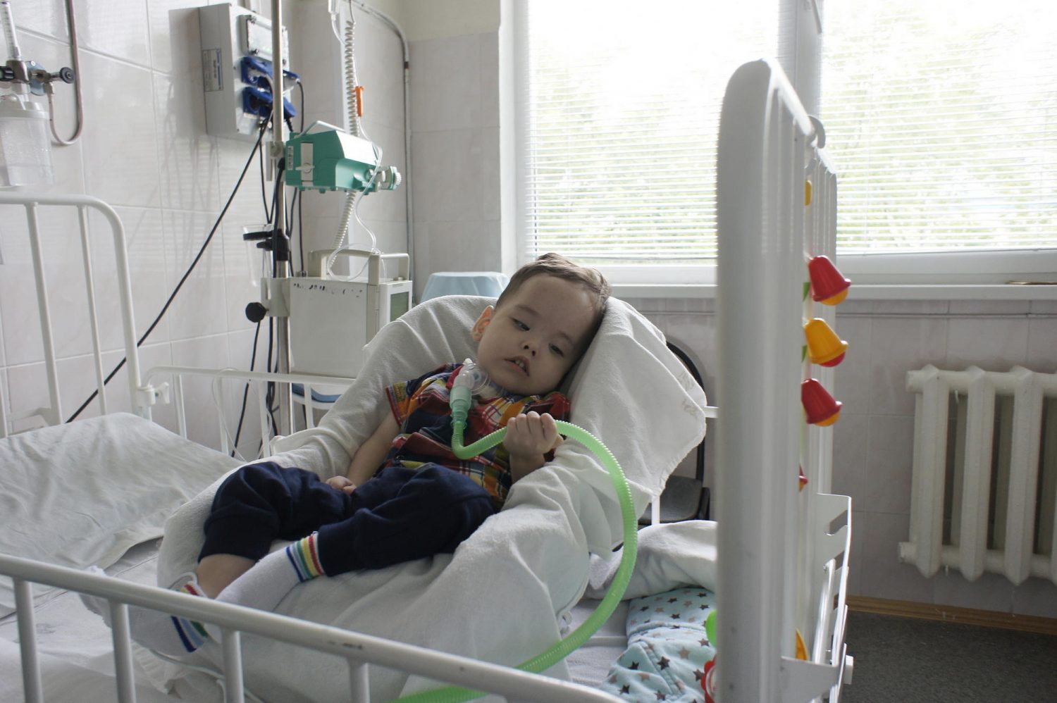 Сейчас Лёва привязан к реанимационной палате тремя трубками. Одна ведёт к экрану пульсоксиметра — прибора, который измеряет пульс и уровень кислорода в крови. Вторая — к кислородному концентратору, который поставляет кислород Лёве, третья — к капельнице. Лёве 2 года, из них только 4 дня он был дома: успел увидеться с братом-близнецом, познакомиться со старшей сестрой. И снова попал в больницу. С тех пор прикован к ней трубками и шнурами. Мама Екатерина так долго живёт в больнице вместе с Лёвой, а второй сын называет «мамой» папу мальчишек.
