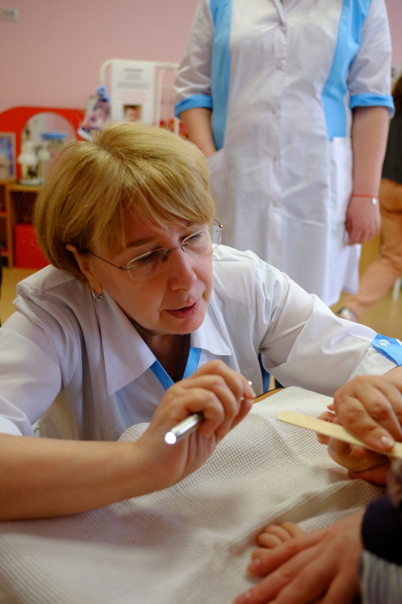 «В сравнении с декабрём я вижу разительные изменения, – рассказывает Нина Надеина, афазиолог. – Блок милосердия вообще – это особый блок, и по нему особенно видны перемены. Персонал по-другому относится к детям: люди сознательно перешли к системе воспитания детей от системы ухода за ними. Если в декабре 30 человек получали пищу через зонд, то сейчас их 11, и сейчас мы выявили детей, которым показаны процедуры тренировочных кормлений. Я бы расценила динамику блока от 0 до 100 баллов: ребёнок был зондовый, и за полгода он начал сглатывать и взял ложку! С теми, что едят ложкой, персонал правильно взаимодействует: правильно высаживает, кормит с речевым сопровождением. Но, к сожалению, трое детей останутся на зондовом питании: им показана гастростома, которая поддержит белковый баланс и позволит избежать нутритивной недостаточности».