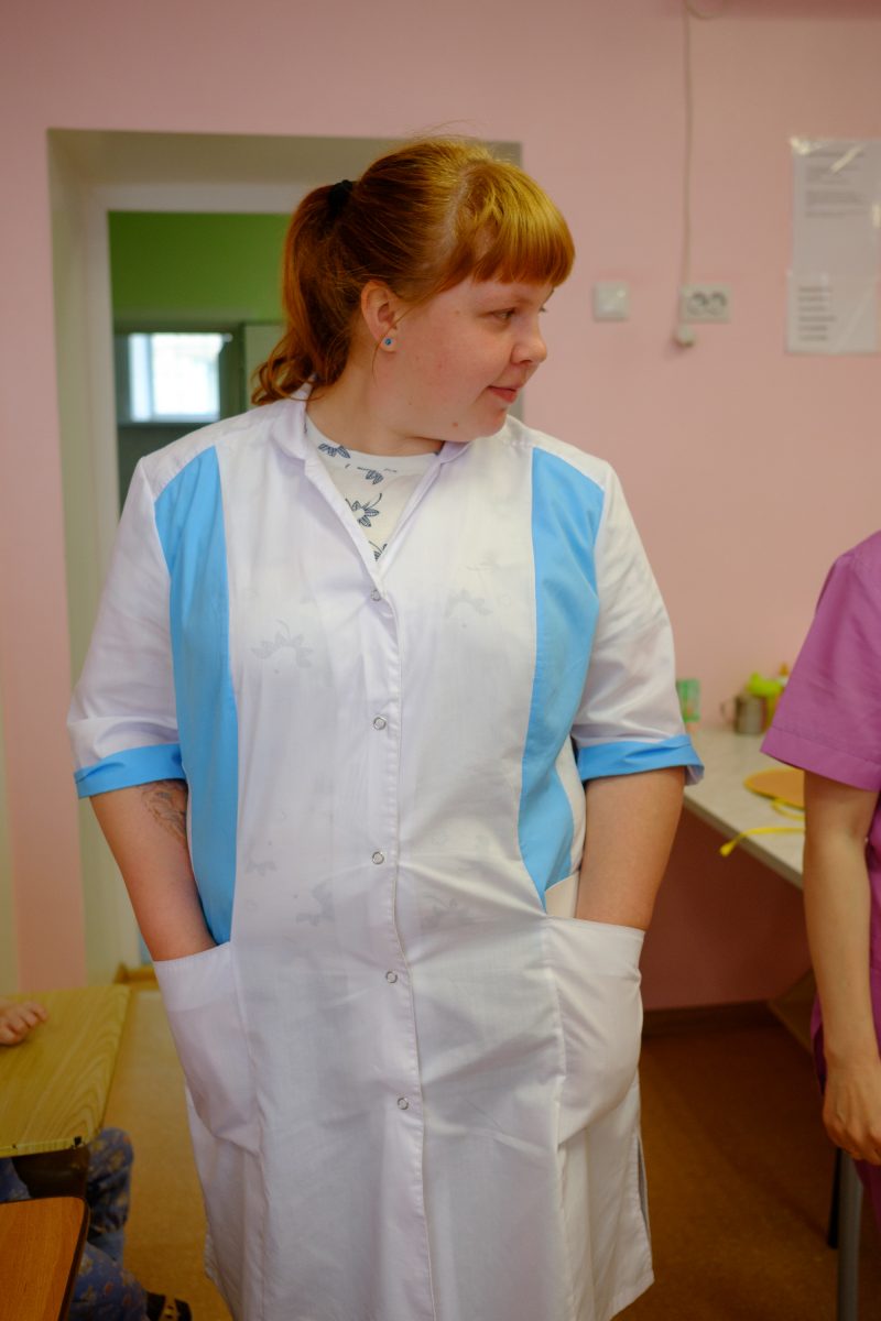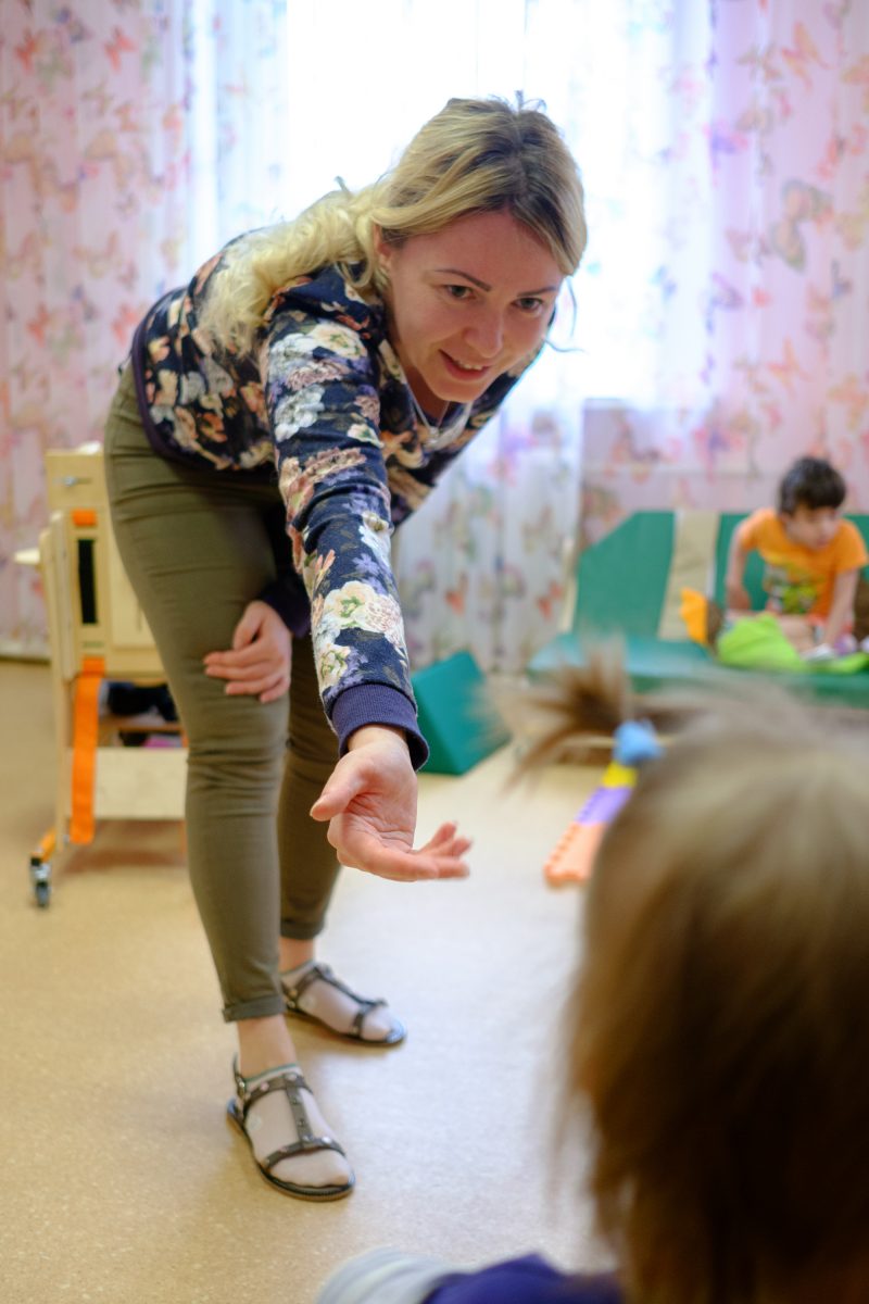 Работа с детьми блока милосердия – это системный процесс, который невозможен без специалистов, работающих с пациентами постоянно. В 2018 году в Рудничном появилась ставка дефектолога, и на это место пришла Елена Столбова – медсестра, дефектолог, которая сразу же включилась в работу учреждения и стала сердцем всех изменений, происходящих в интернате.
