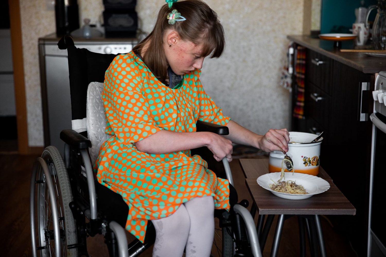 Даша уже научилась самостоятельно мыть посуду и составлять меню, выбирать продукты и готовить — больше всего ей нравится омлет. Даша сама следит за личной гигиеной, планирует бюджет и свой день. Впервые в жизни брать ответственность за собственную жизнь трудно. Но благодаря вашей поддержке шаг за шагом к девушке возвращается будущее.
