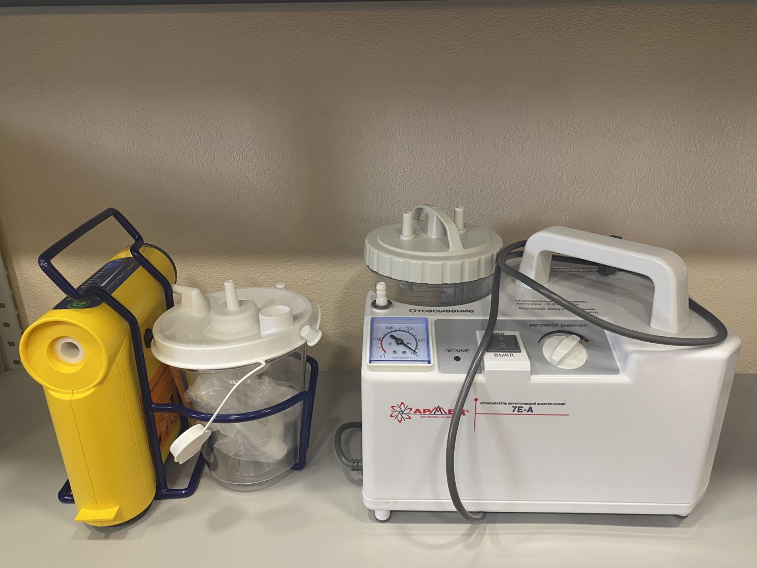 Слева — новый портативный аспиратор, купленный энергетиками, а справа — стационарный аспиратор, которым обычно семьи пользуются дома