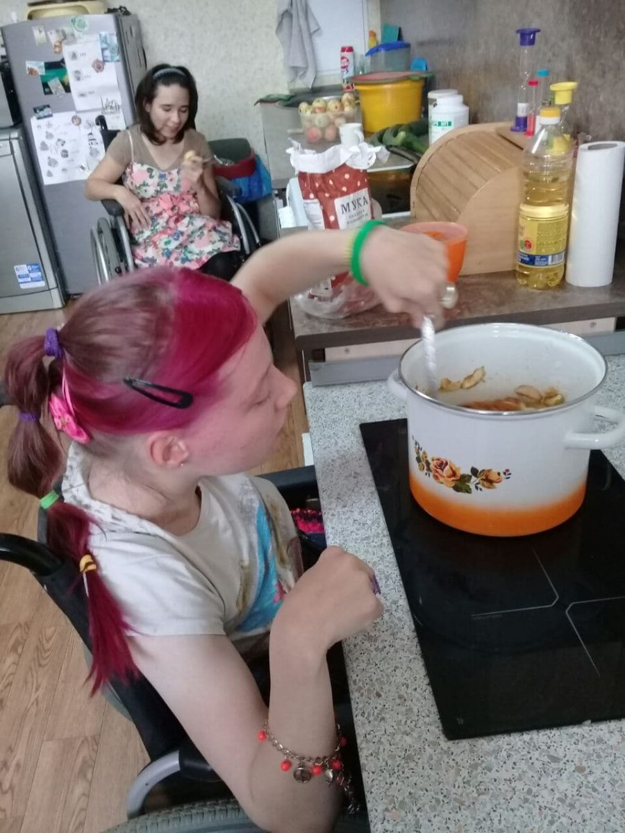 Кроме подготовки к учебе, ребята продолжали осваивать бытовые навыки вместе с сопровождающими специалистами. В августе, в разгар урожайного сезона, мы просили вас поделиться овощами и фруктами с огородов. Благодаря вашим дарам участники «Вернуть будущее» пробовали делать домашние заготовки.
