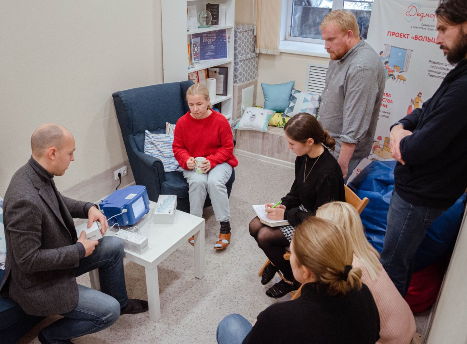 Врачи Службы качества жизни «Дедморозим» прошли обучение, чтобы использовать капнометр на дому у подопечных — это поможет предотвратить смертельно опасные осложнения, связанные с дыхательной системой, и снизить количество госпитализаций тяжелобольных ребят. Обучение проводил Михаил Васюков, менеджер продукции ООО «Радиометр».