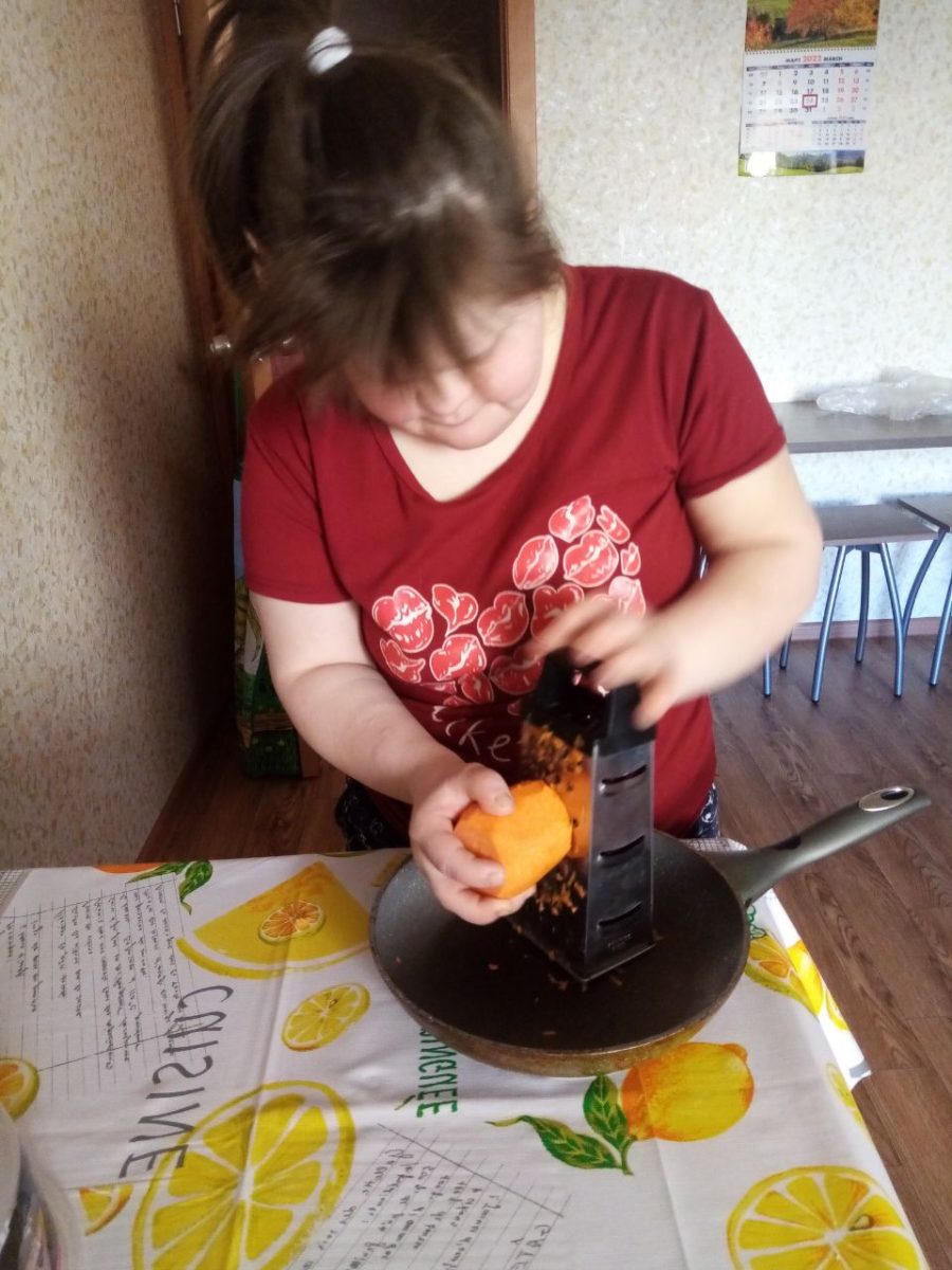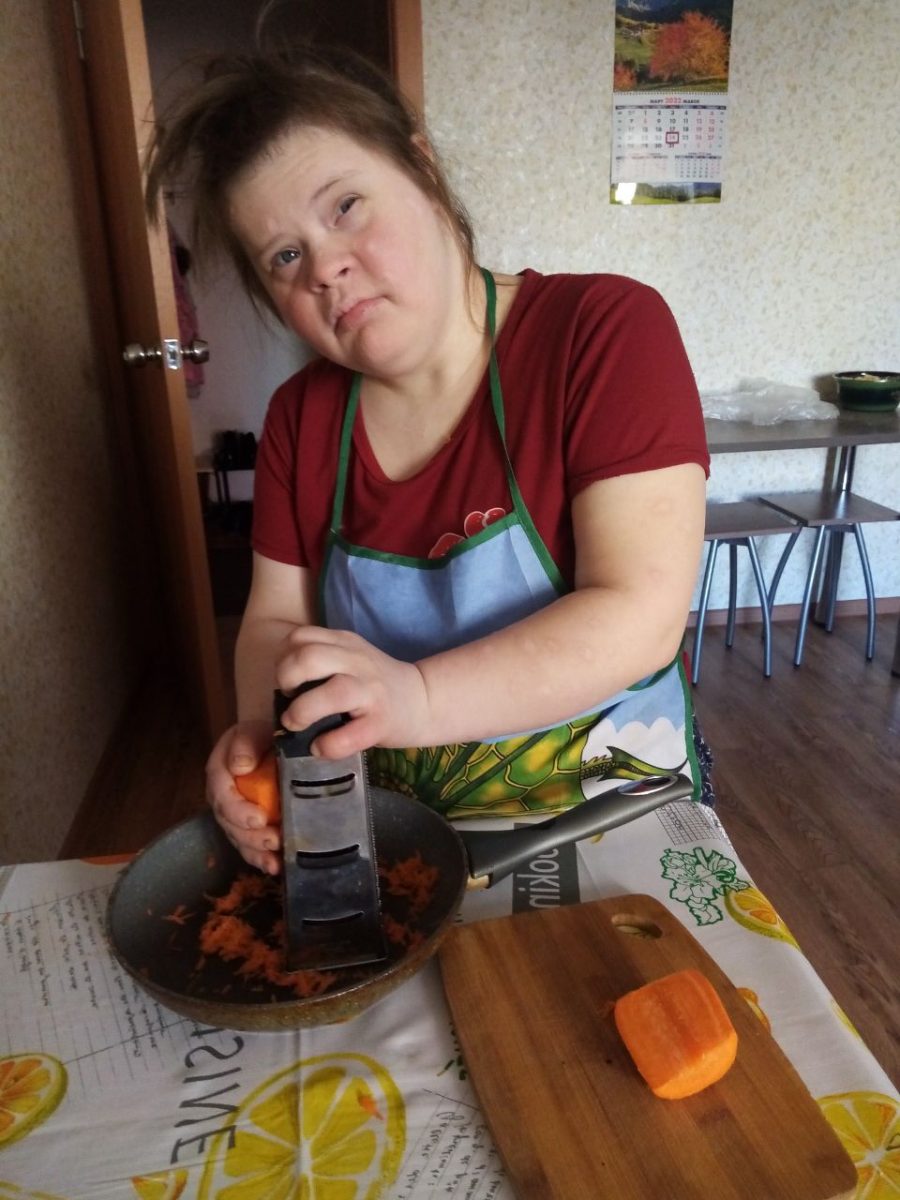 «Интересно наблюдать, как наши девушки меняются, становятся более самостоятельными. Сегодня на обед они захотели приготовить тушёную картошку. Аня назвала ингредиенты, проверила наличие нужных продуктов дома и сама сходила за недостающими: она уже свободно отправляется одна в магазин — без списка, легко запоминает несколько названий, приносит чеки и сдачу. Проявляет заботу о Вере — Аня пришла из магазина не только с нужными продуктами, но и для Веры купила её любимое печенье, — рассказывает Наташа Пехтелева, специалист Службы сопровождаемого проживания. — Вера, которая обычно быстро теряет интерес с готовке, сегодня помогала от и до. Порезала картошку, помогла сделать зажарку. Нужно было потереть морковь. Она ей досталась короткая и очень толстая — натираться никак не хотела. Вера меняла стороны у тёрки, брала её то в правую, то в левую руку, садилась, вставала, чтобы легче было тереть, но у неё никак не выходило. Наконец Вера сама взяла нож и разрезала морковку на несколько частей, после чего легко справилась с задачей. Пусть маленькая, но победа».