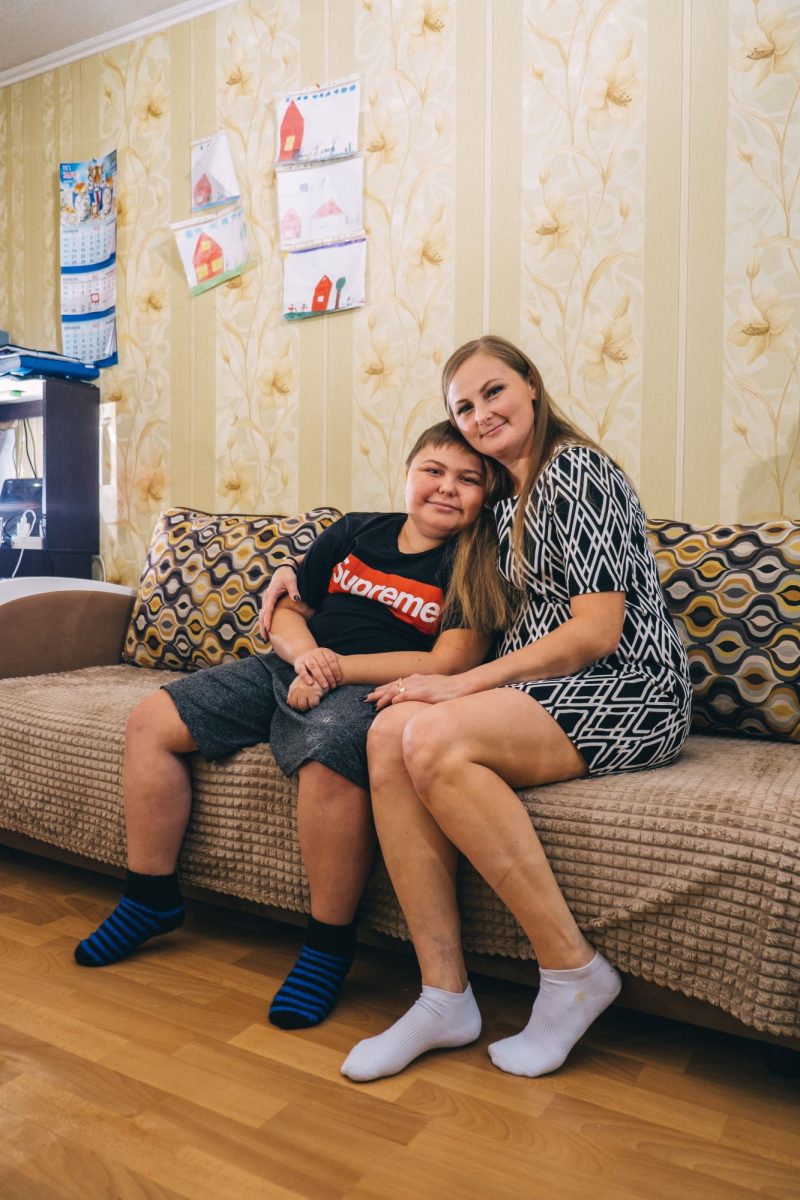 Рома тоже помнит этот день: «Я процедуру делал постепенно, не сразу на 90 градусов, Дима боялся, в семье были слёзы. Это такой страх высоты, когда ребенок долгое время не ходит и смотрит на мир с одного положения, а тут сразу поднялся на метр семьдесят. У нас это привычное. Те же эмоции случаются, когда лежачие дети впервые садятся в коляску. У нас вообще началось так: Дима не давал прикасаться к ногам никому. Видимо раньше резко начинали растягивать мышечные контрактуры, и возникала боль. Я начал растяжками заниматься потихоньку, выпрямлять ногу, затем и он сам тоже начал».