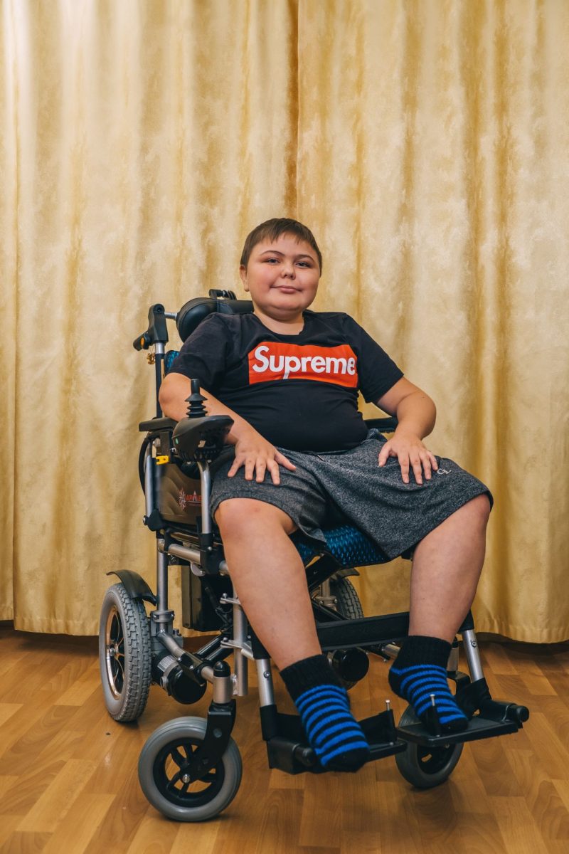Дима Шишигин перестал ходить после десяти лет — из-за прогрессирующей болезни. Её особенность в том, что суставы теряют подвижность, и поэтому руки и ноги  не могут полноценно двигаться. «Дедморозим» принял мальчика на сопровождение  выездной службы качества жизни, и с тех пор её команда ежемесячно бывает у Димы в Соликамске и проводит диагностику.