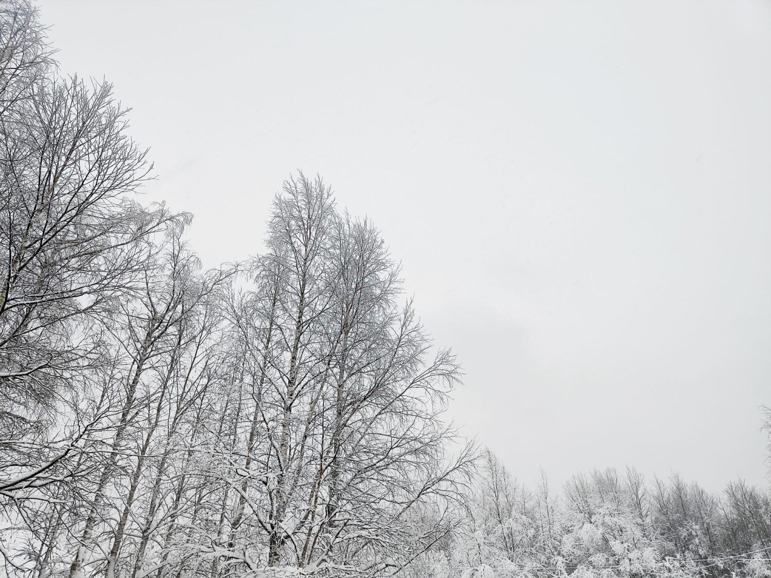 Молча мы едем некоторое время. Такие же молчаливые ели, плотно укрытые снегом, проплывают за окном. Обратный путь такой светлый, практически белый: мы едем будто в молоке. Белая дорога, белое небо, белые обочины и белые ели. По дороге из Рудничного особенно заметно, как много вокруг света.