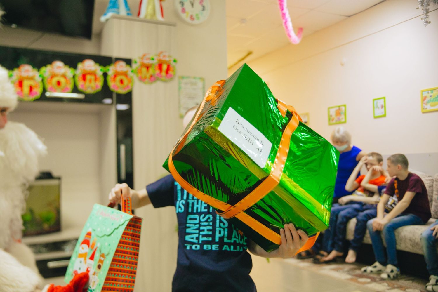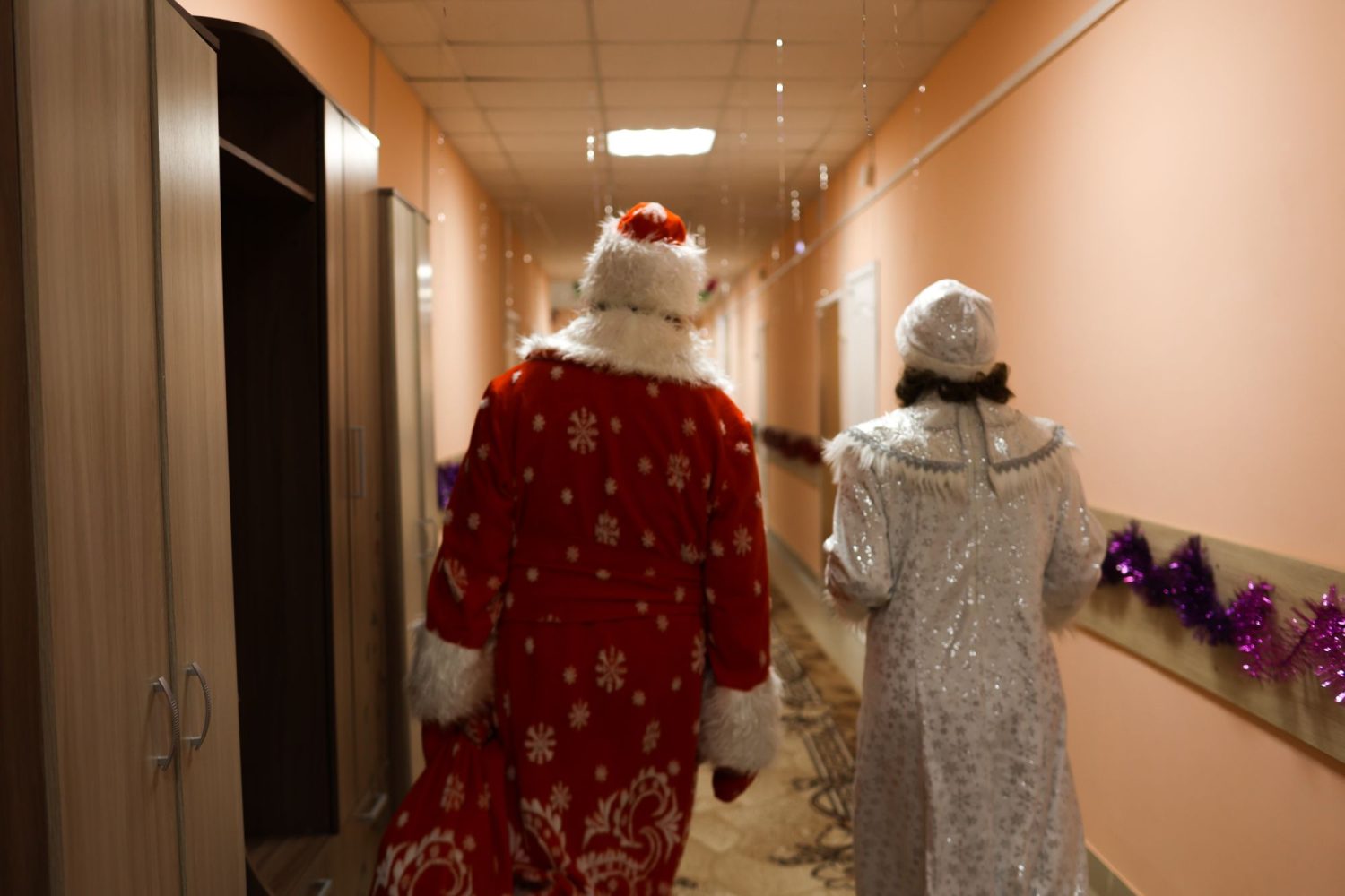 Пока ребята наряжаются и собираются на праздник в общем зале, мы решили поздравить отделение Милосердия. Здоровье ребят не позволяет им быть на ёлке со всеми, поэтому праздник пришёл к ним сам. Здесь в четырёх группах живут 27 ребят с тяжелыми заболеваниями, они нуждаются в специализированном уходе. Качество жизни ребят поддерживается в том числе с помощью Службы качества жизни «Дедморозим». Много знакомых лиц подросли, окрепли. И конечно осуществили свои фирменные захваты бороды, носа и шубы Деда Мороза. Все письма с мечтами здесь написаны воспитателями и нянями. Они, как никто, понимают этих ребят и точно знают, что может их порадовать и заинтересовать.