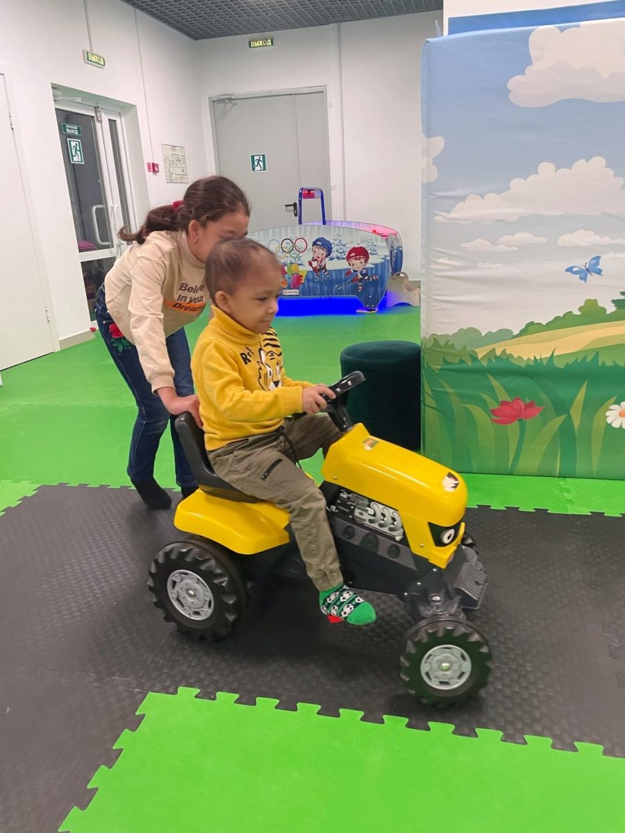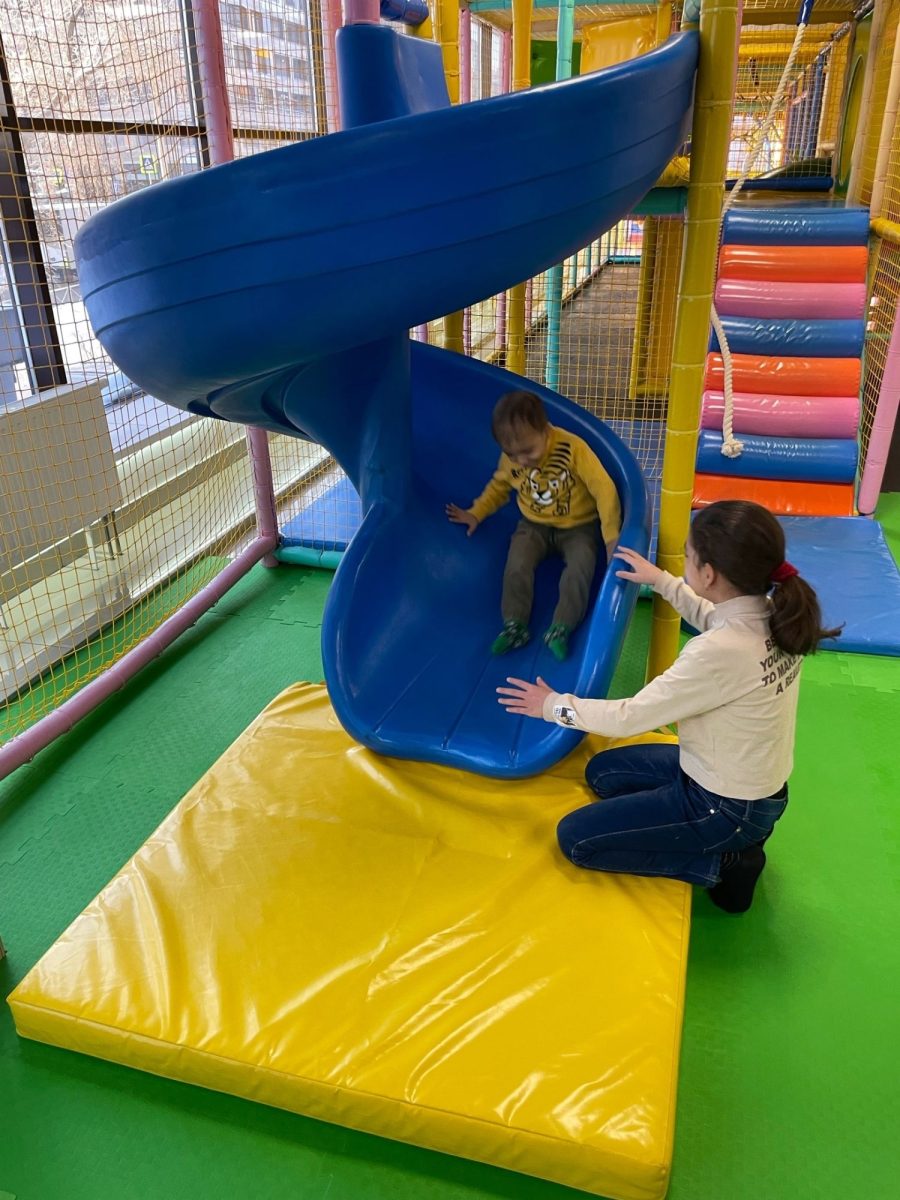 А недавно с Даутбеком, его сестрёнкой и мамой мы ходили в игровой центр “Коротышки”. Попрыгать на батуте и покататься с горки — и вот, перед тобой стоит счастливый ребенок.