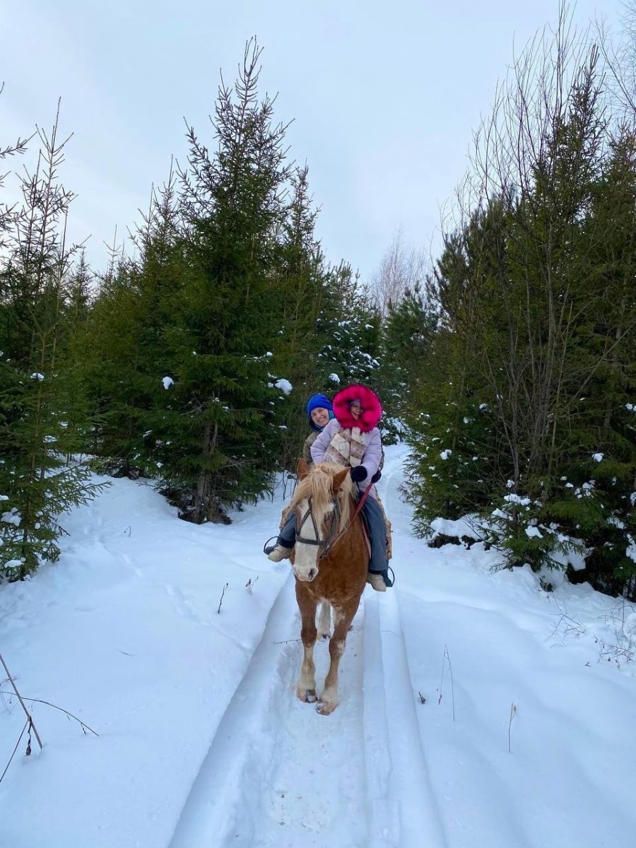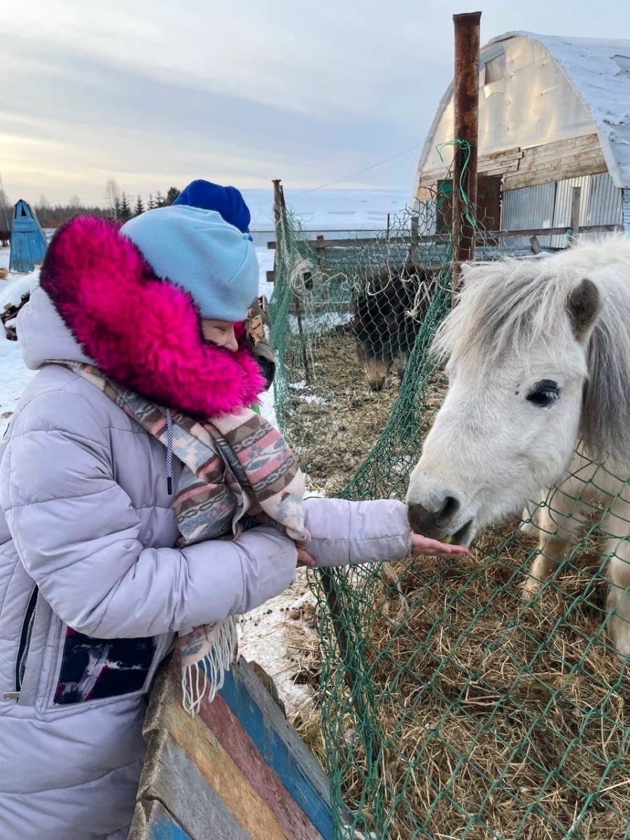 Давней мечтой Лизы было прокатиться верхом на лошади. В январе мы вместе с ней и её мамой отправились на прогулку с лошадьми и побывали в  мини-зоопарке в “Юго-Камском Конно-спортивном клубе”.