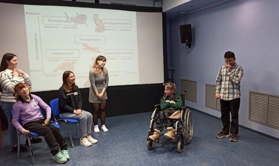 Дело в том, что люди, которые выросли в закрытых учреждениях, реже оказывались в необычных ситуациях общения — часто они могут испытывать сложности при коммуникации и в выражении эмоций. Чтобы обучить ребят саморегуляции, ведению переговоров, самопрезентации, мы разработали серию тренингов. Один из тренингов — поведение в конфликте — прошел 4 апреля. Наша глобальная цель — научить ребят самостоятельно ориентироваться в непростых ситуациях и справляться со своими чувствами.