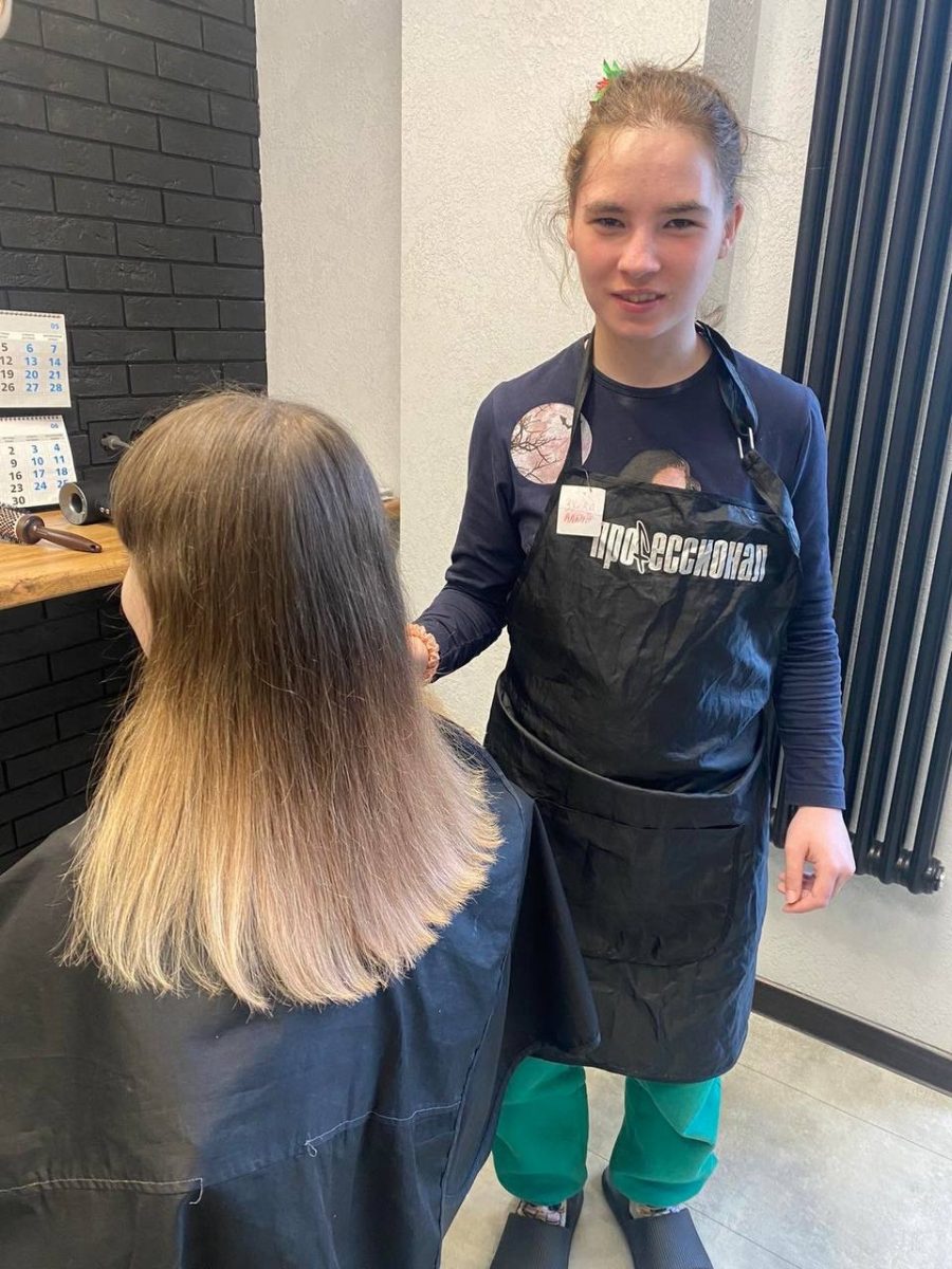 Когда Алёна пришла первый раз, то я сразу поняла, что ей интересна профессия парикмахера и хочется всё попробовать на практике. Изначально с координаторами проекта мы договорились, что Алёна будет наблюдать за моей работой. Но увидев её заинтересованность, я решила перестроить план занятий для Алёны и включить в них практическую часть. Трудностей у нас не было: Алёна хорошо и с интересом выполняла все задания — занятия проходили в непринужденной обстановке