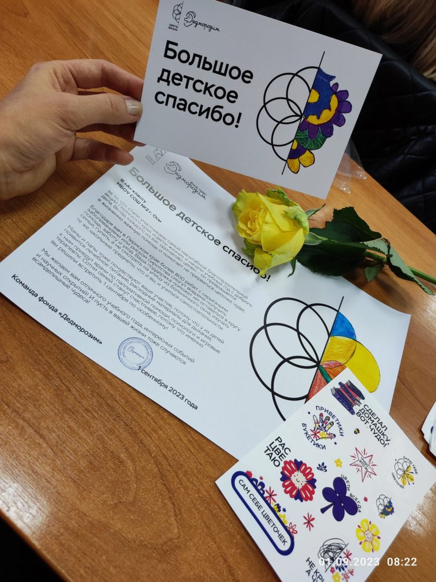 Уже шестой год школьники вместе со своими родителями и педагогами совершают совместное чудо 1 сентября. Вместо большого количества цветов ребята дарят общий букет учителю, а сэкономленные средства отправляют на благотворительность — в поддержку подопечных «Дедморозим». Мы передаём большое спасибо всем, кто принял участие в акции — вы помогаете случаться чудесам тогда, когда они нужны больше всего.