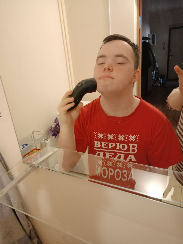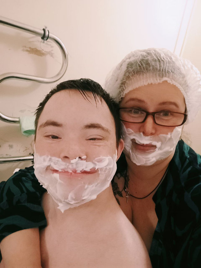 Так Наталья освоила безопасное бритьё вместе с Димой – парнем с синдромом Дауна и огромным сердцем: «Пришлось показывать на себе. Ну а как? Дима почти не говорящий. Показываешь – он вроде и смеётся, но делает!»