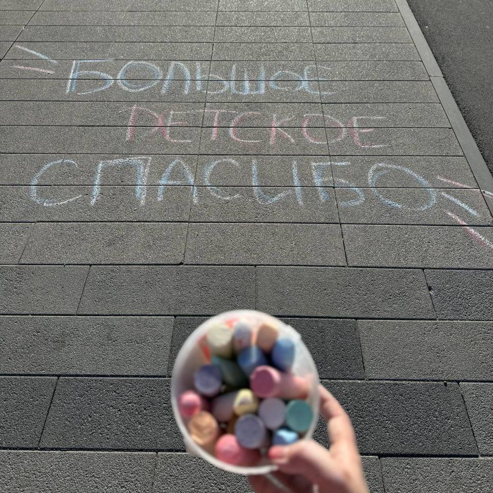 К 1 июня, который в «Дедморозим» празднуют как День защитников детей, пермяки получили самое большое детское спасибо в мире. На протяжении 2023 метров улиц Ленина и Комсомольского проспекта появились меловые надписи с благодарностью, а также фразы «Смело верьте в чудеса» и «Чудо – это вы», напоминающие, что если поверишь в чудеса, то поверишь и в себя. Такие же сообщения можно увидеть на билбордах и медиафасадах торговых центров.