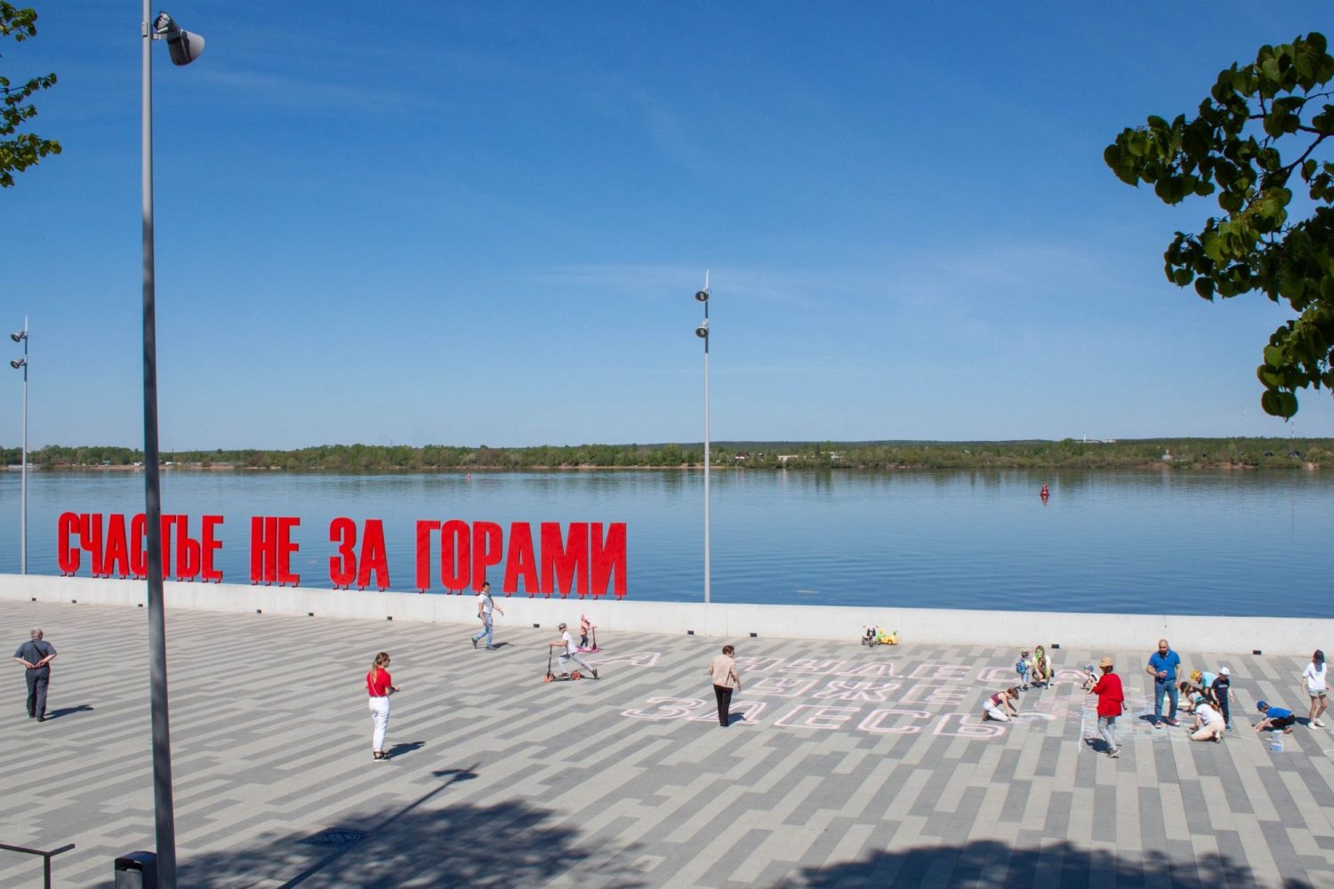 А на пермской набережной появился арт-объект, продолжающий фразу «Счастье не за горами». Огромную надпись мелом «А чудеса уже здесь» и «Большое детское спасибо» сделали жители города и сотрудники фонда «Дедморозим» по просьбе тяжелобольных детей и ребят с инвалидностью.